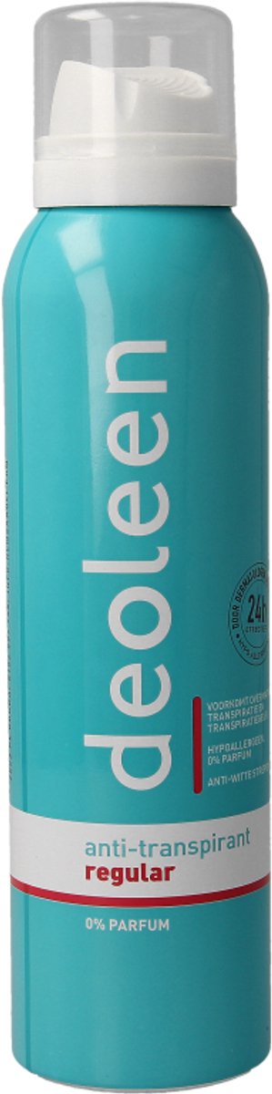 Bol.com | Deoleen Anti-transpirant - Aerosol Regular - Voorkomt overmatige transpiratie en transpiratiegeur - 48 uur effectief - 0% parfum - Dermatologisch getest - Deodorant - 150 ml |