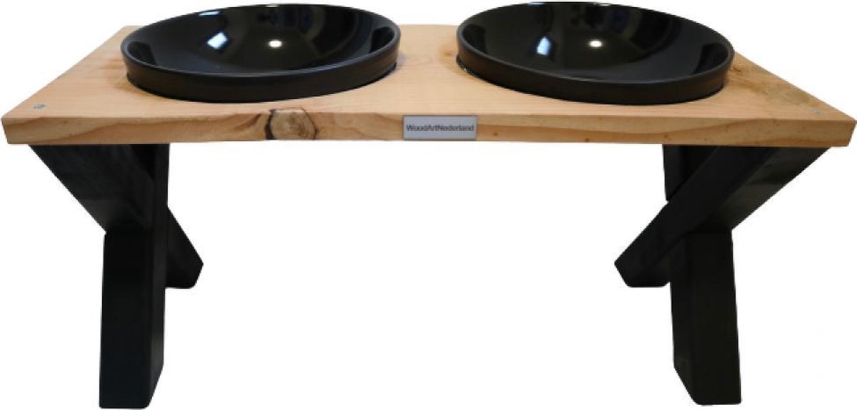 Bol.com | Industriële steigerhouten X poot voerbak hond Zwart Ø 21 cm |