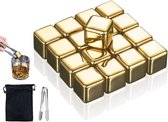 Bol.com | Herbruikbare whiskystenen van roestvrij staal - 16 stuks goud met ijsclip - whisky wodka likeur wijn |