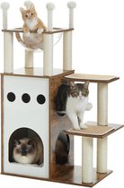 Bol.com | Kattenu MeowPalace krabpaal hout voor katten XXL - Bruin - 108 cm hoog - kattenmeubel met krabpalen - Met kattenhuisje |