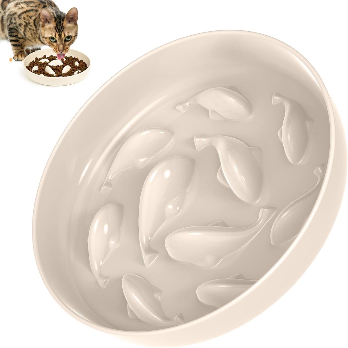 Bol.com | Slowfeeder kat, anti-slingerende kom voor katten en kleine honden, interactieve voerbak voor huisdieren, langzaam voedende hondenkom, kattenkom, vermindert slikken en overeten, wit |