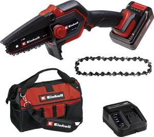 Alternate | EINHELL GE-PS 18/15 Li Bag Kit Accu Mini Kettingzaag snoeizaag Zwart/rood, 1x 2.5 Ah Power X-Change accu en oplader inbegrepen |