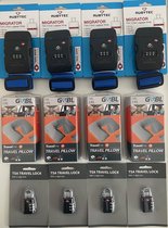 Bol.com | G&BL - Ruby tec - Reisset - Vakantie - Reizen - Tsa kofferriem blauw 4 Stuks - Cijferslot 4 Stuks - nekkussen 4 Stuks Set van 12 Stuks |
