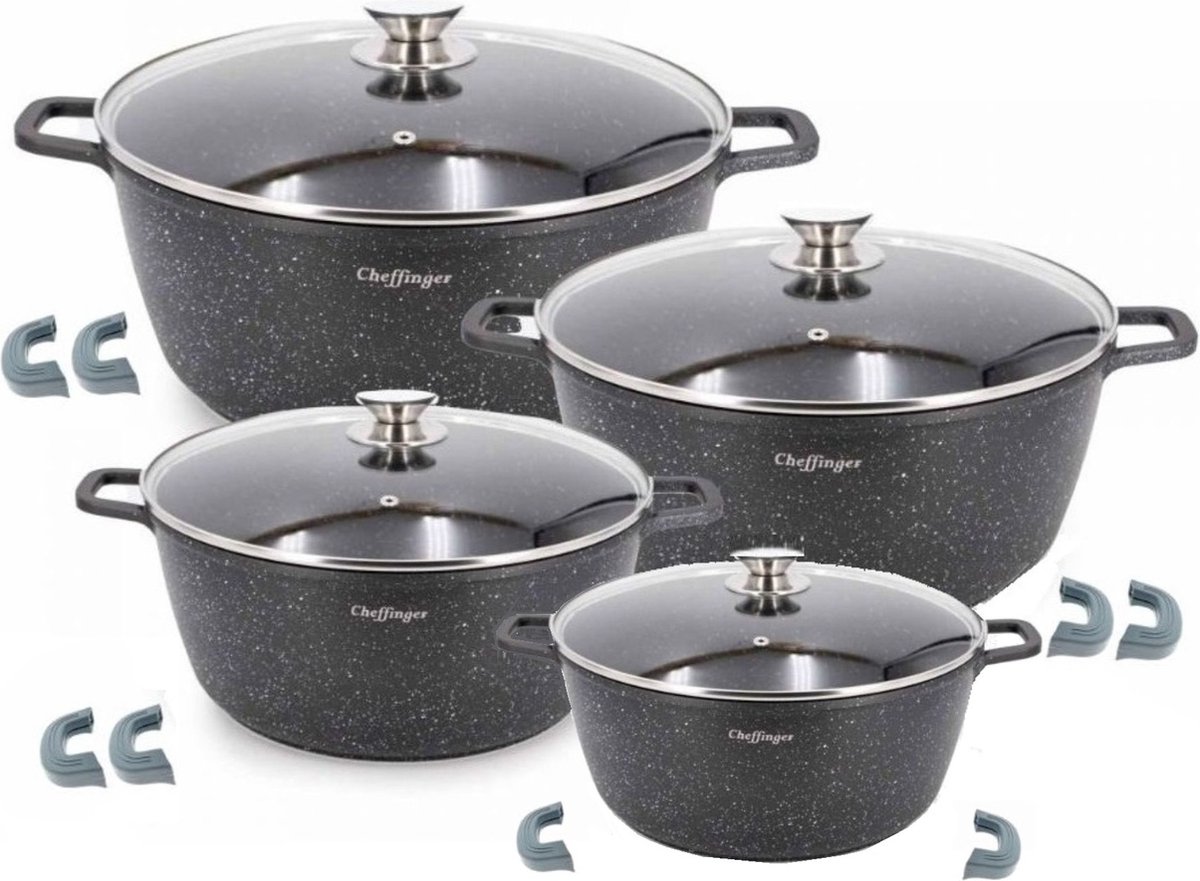 Bol.com | Cheffinger Pannenset - 8-delig - Zwart - Inductie - 20cm, 24cm, 28cm, 32cm |