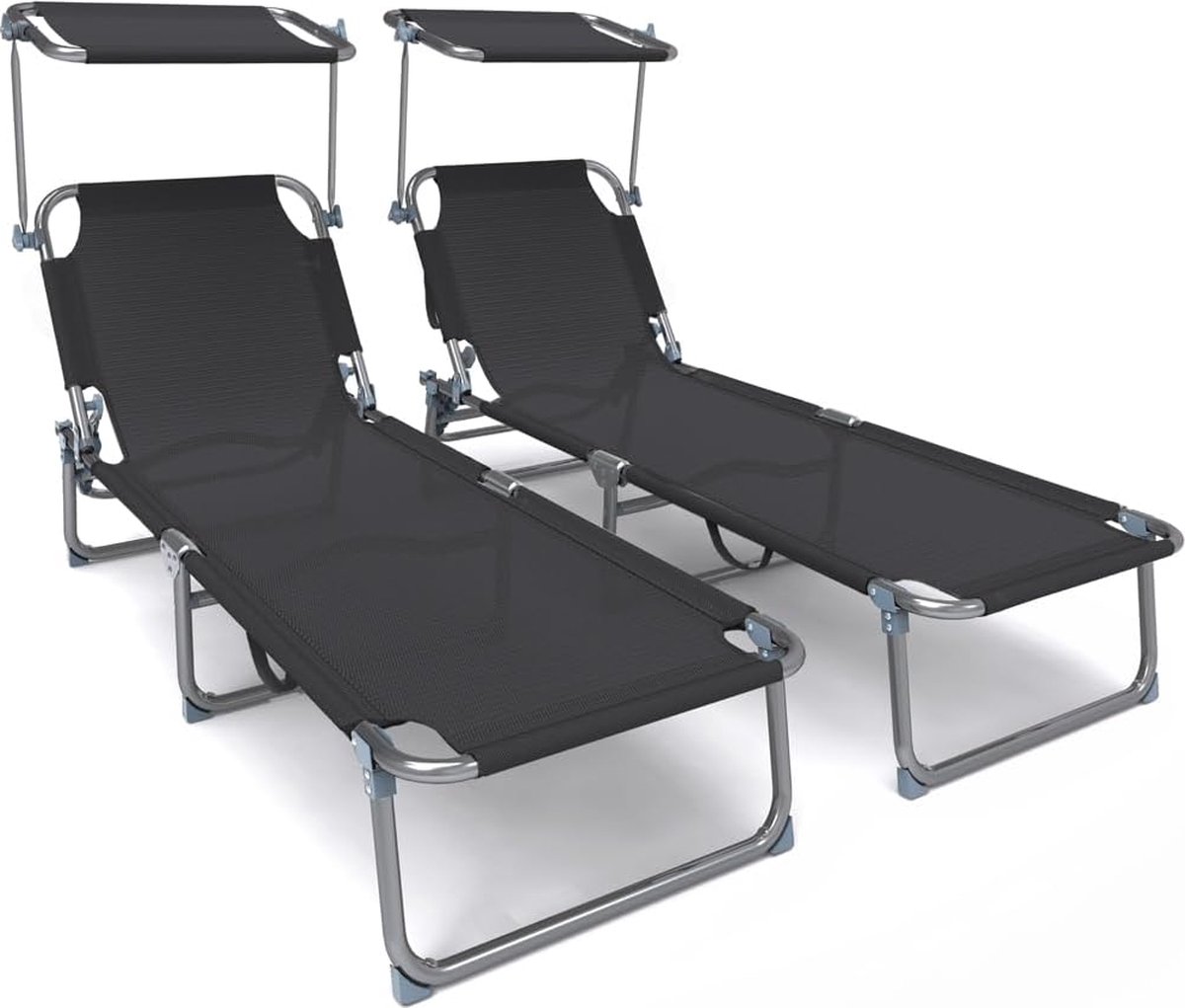 Bol.com | Set van 2 zonnestoelen, inklapbaar, tuinligstoel, strandstoel met zonwering en verstelbare rugleuning, ligstoel voor tuin, zwembad, terras, zwart |