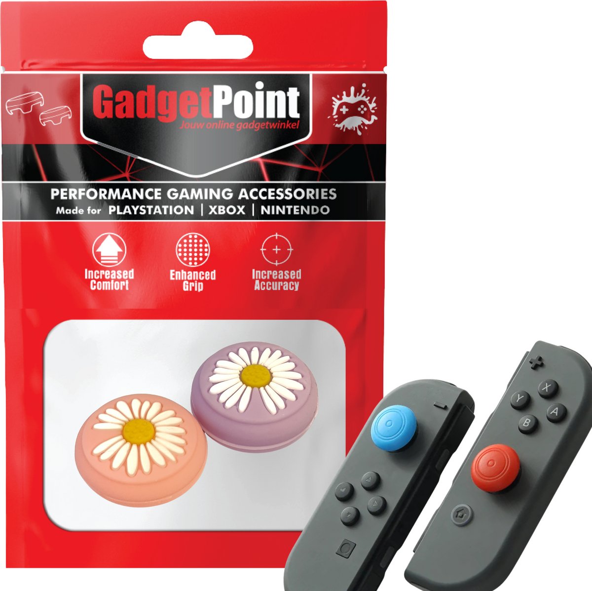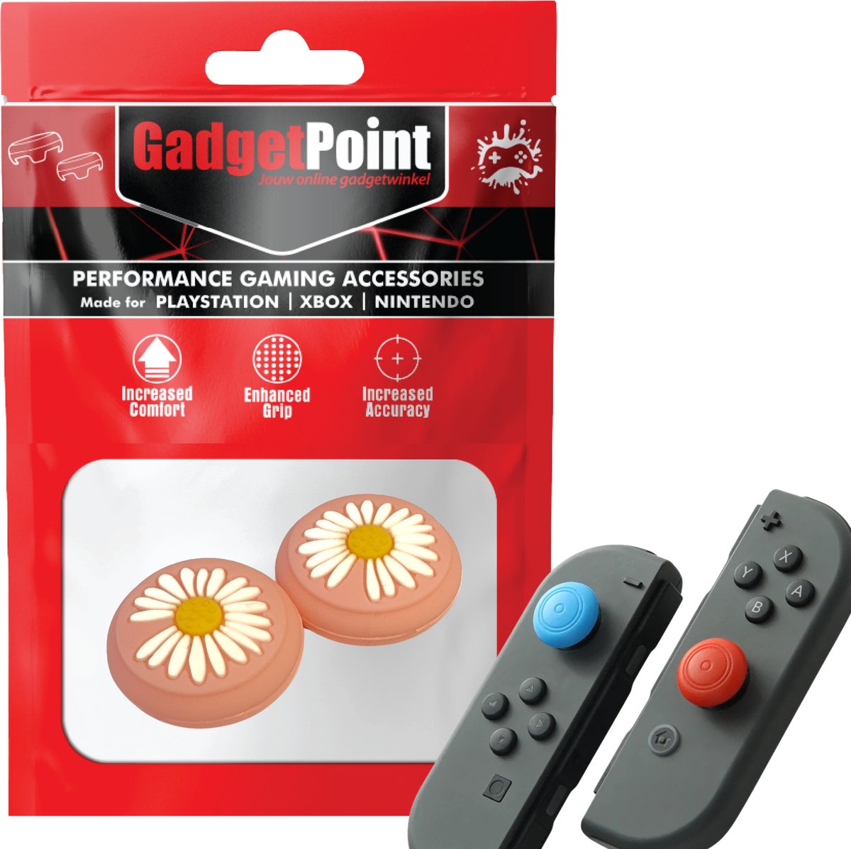 Bol.com | Gadgetpoint - Thumb Grips voor Nintendo Switch Joy-Con Controllers - Gaming Thumbgrips - Performance Anti-Slip Thumbsticks - Bescherming Accessoires - Bloemetjes Roze |