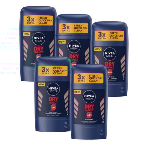 Wehkamp | NIVEA FOR MEN Dry Impact deodorant stick - 5 x 50 ml - voordeelverpakking |