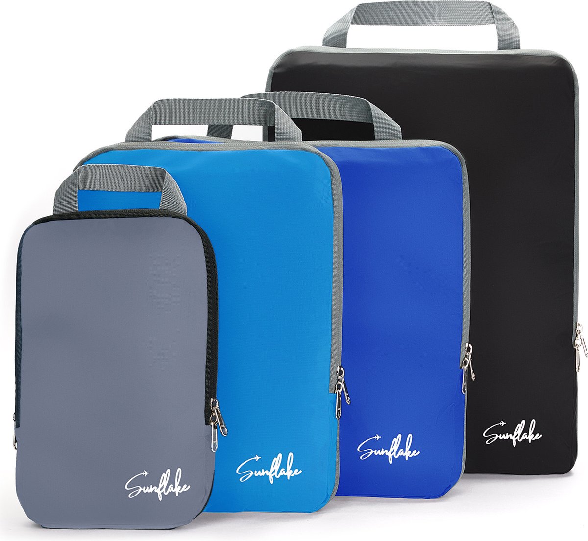 Bol.com | Packing Cubes met Compressierits - Set van 4 Compressie Cubes voor Koffer - Compression - Multi Color - Sunflake |