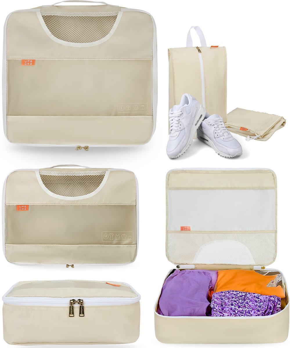 Bol.com | UP&GR8 Packing Cubes - Premium Koffer Organizer Set (6-delig) - Overzicht in Bagage Backpack Tas - Geschenkset - Beige |