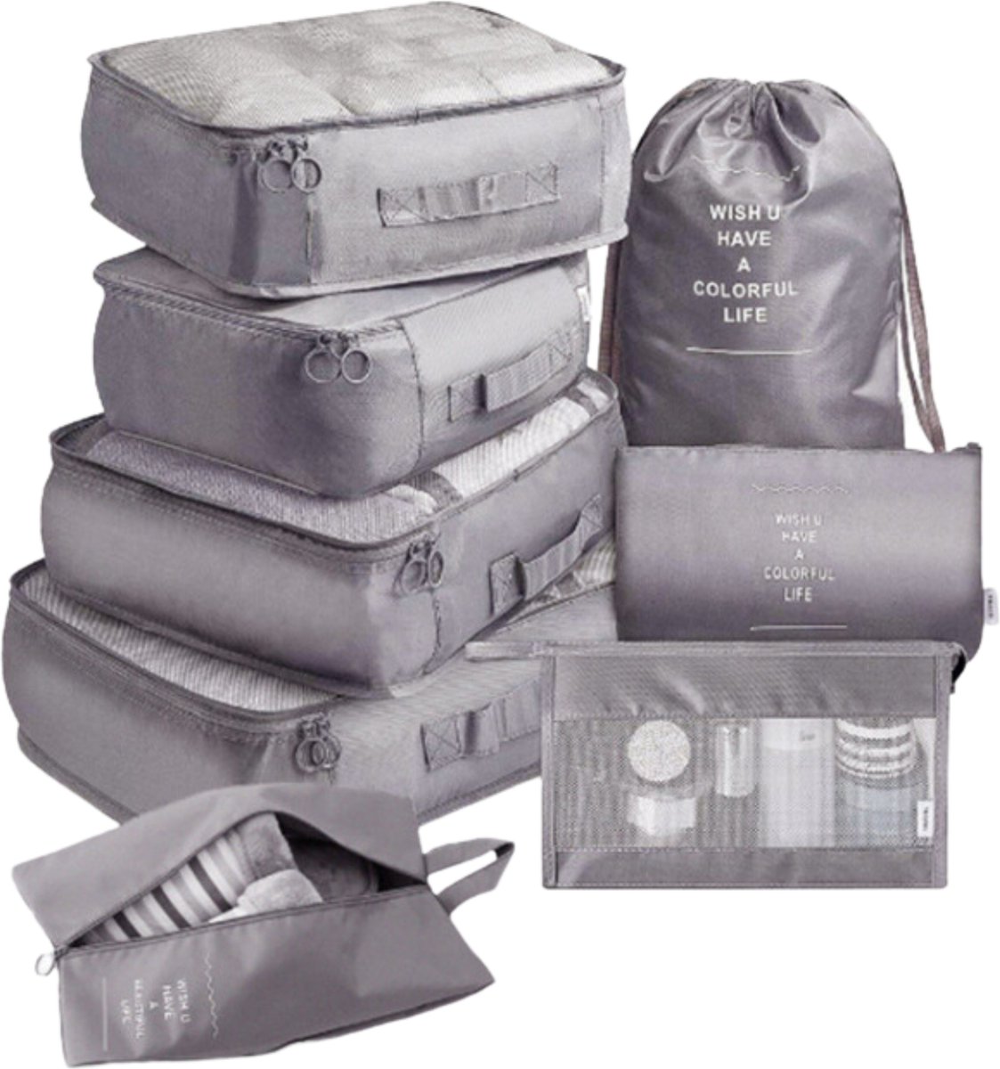 Bol.com | Pazzo Goods Packing cubes set 8 Delig - Koffer Organizer Set - Bagage Organizer, Kleding organizer voor koffers, tassen en backpack - Grijs |