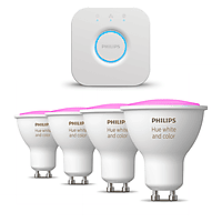 MediaMarkt | PHILIPS HUE Starterspakket GU10 met 4 Spotjes Wit - Incl. 1 Hue Bridge, Hue White and Color Ambiance |