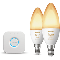 MediaMarkt | PHILIPS HUE Starterspakket E14 met 2 Kaarslampen Wit - Incl. 1 Hue Bridge, Hue White Ambiance |