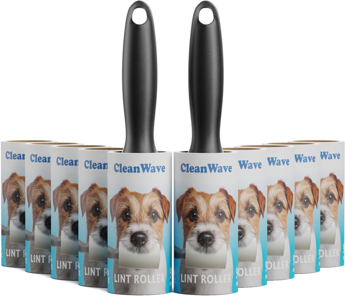 Bol.com | ®CleanWave Kleefroller 900 zeer klevende vellen – kledingroller met 2 handgrepen - 10 rollen - 1 beschermkap - Pluizenverwijderaar - kleefroller |