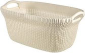 Curver KNIT wasbox, 40L, oase witDe KNIT wasbox is een onmisbaar gebruiksvoorwerp in je huishouden. De doos maakt indruk met zijn rechthoekige ontwerp in een exclusieve gebreide look en heeft handvatten aan de zijkant. Bovendien is deze wasmand nestbaar. De afmetingen van deze KNIT wasbox zijn 59,5 x 38,5 x 27 cm (lengte x diepte x hoogte), de inhoud bedraagt 40 l. De wasmand is verkrijgbaar in verschillende kleuren.