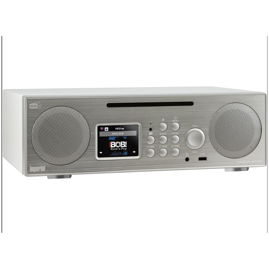 Inhoud 1 pc. Beschrijving IMPERIAL DABMAN i450 CD De DABMAN i450 CD is een echte allrounder - het multifunctionele toestel is geschikt voor ontvangst van DAB en FM radio. Hij biedt ook toegang tot meer dan 25.000 Internet radiostations, laat het gebruik toe van diverse streaming diensten zoals Napster Tidal Deezer en andere en heeft een station voor audio en MP3 CD's. Twee 3" luidsprekers in combinatie met een subwoofer in de voet van het toestel zorgen voor een volumineus stereogeluid dat via verschillende equalizerinstellingen aan de individuele luisterwensen kan worden aangepast. Het 2.8" TFT kleurenscherm (7,11 cm diagonaal) geeft nuttige achtergrondinformatie over het lopende programma en vele extra functies, zoals de geïntegreerde wekker UPnP en Bluetooth ronden het scala aan functies van de DABMAN i450 CD af. Het hoogtepunt van de radio is dat hij voorbereid is voor inbouwmontage (beugel inbegrepen) en daardoor perfect geschikt is als keukenradio.