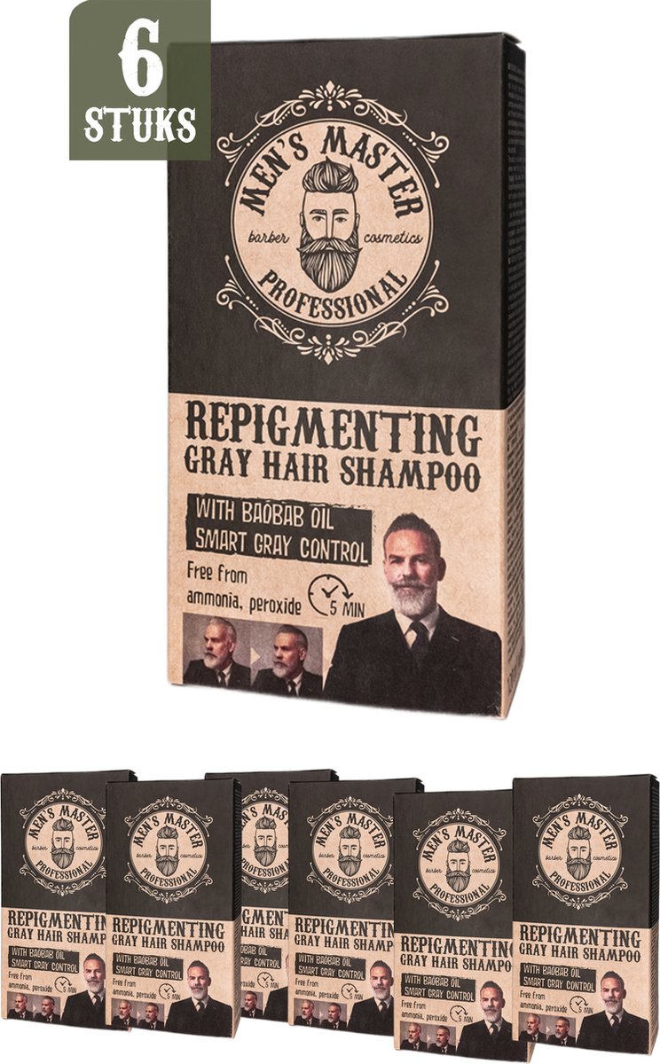 De Men's Master Repigmenting Grey Hair Shampoo - Kleurshampoo Grijs Haar Mannen - Voordeelverpakking - 6 x 120ML is op dit moment niet in de aanbieding.