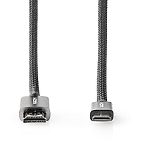 De Nedis High Speed HDMI-Kabel met Ethernet - HDMI Connector - HDMI Mini-Connector - 4K@60Hz - 18 Gbps - 2.00 m - Rond - Katoen - Antraciet / Gun Metal Grijs - Cover Window Box is op dit moment niet in de aanbieding.