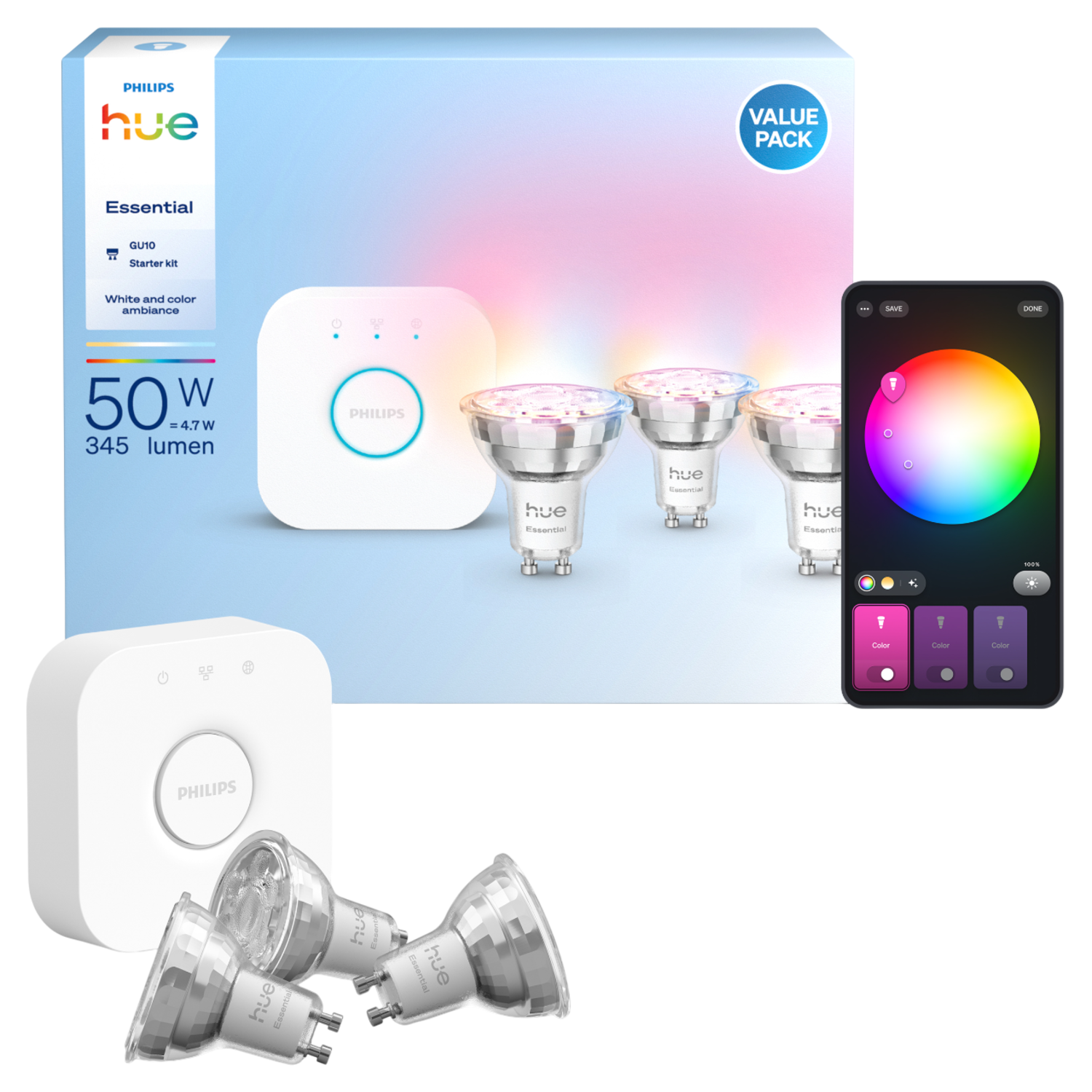 De Philips Hue Wit En Gekleurd Licht 1 Bridge 3 Gu10-spots Starterkit Slimme Verlichting is op dit moment niet in de aanbieding.