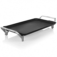 Princess Premium XL Tafelgrill 103110 Vind je het heerlijk om elke dag teppanyaki-style te koken? Of kun je een extra kookoppervlak in je keuken gebruiken waar je samen vlees, vis en groenten kunt bereiden? Kies dan voor de Princess 103110 Table Chef Premium XL. Deze tafelgrill is gemaakt van stevig en lichtgewicht gegoten aluminium dat bestand is tegen dagelijks gebruik. 46 x 26 cm grillplaat Met zijn grote grilloppervlak is de Princess Table Chef XL bijzonder geschikt voor gezinnen. Geniet van een gezellig diner met 4-6 personen, waarbij iedereen zijn eigen smaak kan verwennen. Dankzij het vermogen van 2500 watt wordt de bakplaat snel heet en blijft hij lang heet. Dubbel verwarmingselement met thermostaat Voor een gelijkmatige warmteverdeling heeft de Princess Table Chef Premium XL een dubbel verwarmingselement. Dankzij 2500 watt vermogen wordt de plaat heel snel heet en blijft hij lang heet. Met de thermostaat aan de afneembare kabel kun je handig de temperatuur instellen. Aluminium grillplaat met antiaanbaklaag De Princess Table Chef Premium XL heeft een hoogwaardige gegoten aluminium grillplaat die zelfs bij hoge temperaturen zijn vorm behoudt. Bij de levering zijn vier houten schrapers inbegrepen, waarmee je gemakkelijk je eten kunt opstapelen zonder de antiaanbaklaag van de grillplaat te beschadigen.