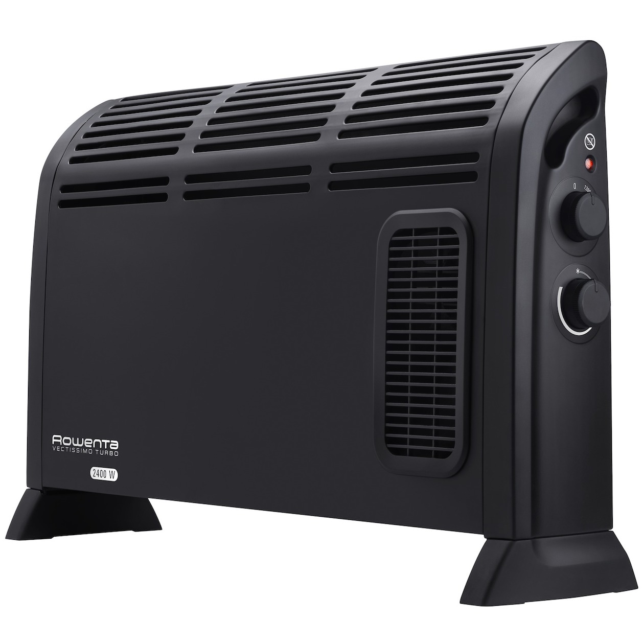 Met de Rowenta Vectissimo Turbo convector met 2400 watt vermogen zorg je snel voor een aangename warmte in middelgrote ruimtes. Naast de convector heeft het apparaat ook een ventilator. Met de twee instelbare verwarmingsniveaus en de thermostaat kun je de kamertemperatuur naar wens regelen. De ventilator en de convector zorgen samen voor een gelijkmatige verdeling van de warme lucht door de kamer. Voor snel verwarmen kies je het vermogensniveau met 2400 watt en voor langer gebruik kies je het verwarmingsniveau met 1200 watt. De extra turbofunctie verdeelt de warme lucht naar voren en naar boven. Na gebruik kun je de convector gemakkelijk vervoeren en opbergen dankzij de praktische draaggreep. Met de ingebouwde thermostaat stel je eenvoudig de gewenste kamertemperatuur in. Het apparaat regelt dan automatisch het vermogen om de gewenste temperatuur te bereiken en te handhaven. Dit verhoogt het comfort omdat je het niet zelf hoeft bij te stellen. Bovendien bespaar je met de functie energie omdat het apparaat alleen verwarmt als het echt nodig is.