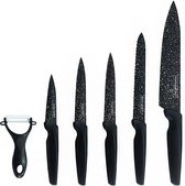 De Royalty Line® MB5B Messenset - 6 Delig Keukenmessenset - Keukenmes - Broodmes - Vleesmes - Dunschiller - Schilmes - Antiaanbaklaag - Zwart is op dit moment niet in de aanbieding.