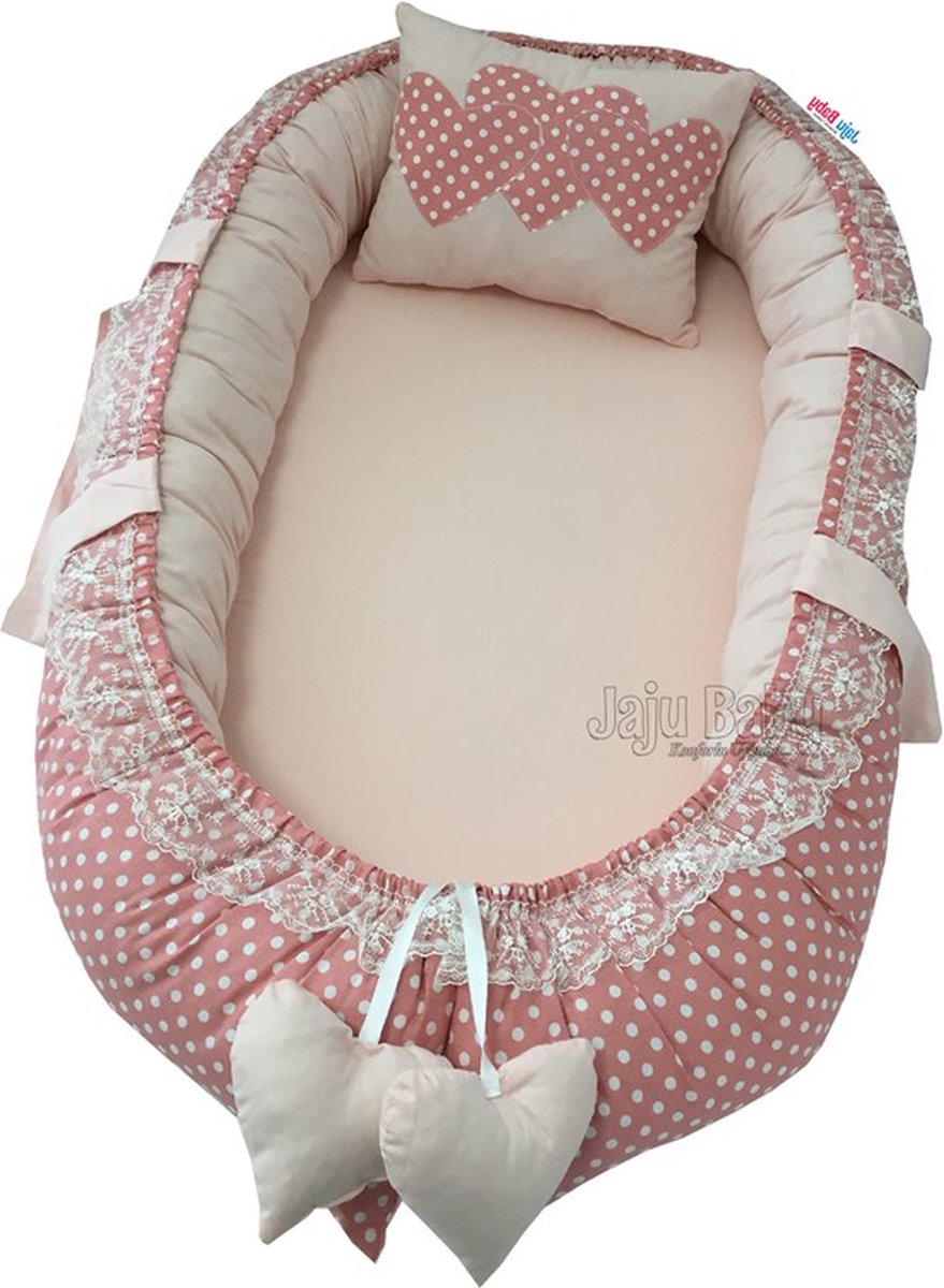 SNS Baby - Babynestje en Hoofdkussen - Organische Katoen - Antibacterieel Babynestje - Anti-Allergisch Babynestje - Polka Dot - Orthopedie - 74 x 40 cm aanbiedingen