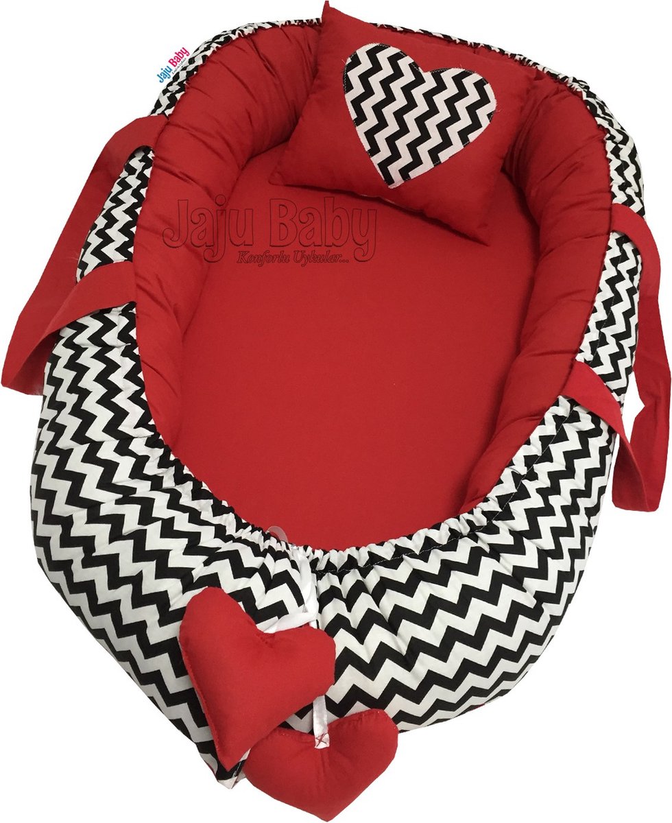 SNS Baby - Babynestje en Hoofdkussen - Organische Katoen - Antibacterieel Babynestje - Anti-Allergisch Babynestje - Rood met zwarte zigzag - 74 x 40 cm aanbiedingen
