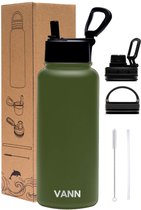 De VANN® 3-Wandige Waterfles 1 liter met rietje voor volwassenen – met 3 doppen / Multifunctioneel – 24uur koud/12 uur warm - Groen is op dit moment niet in de aanbieding.