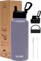 De VANN® 3-Wandige Waterfles 1 liter met rietje voor volwassenen – Met 5 accessoires + 25 recepten – Bidon RVS – 24 uur koud/12 uur warm – Grijspaars is op dit moment niet in de aanbieding.