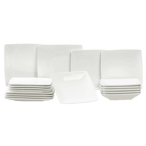 Wehkamp | Yong BonBistro Serviesset Yong Squito - Wit 18-delig / 6 personen - 6 dinerborden, 6 diepe borden en 6 ontbijtborden |
