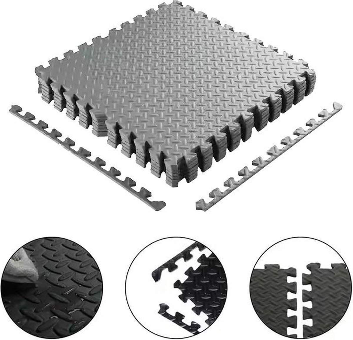Bol.com | ForzaFit EVA Schuim Grijze Fitness Puzzelmat Tegels pak van 4 stuks - 120 x 120 cm - Speelmat 12mm dik - Set van 4 60x60cm Tegels met randen |