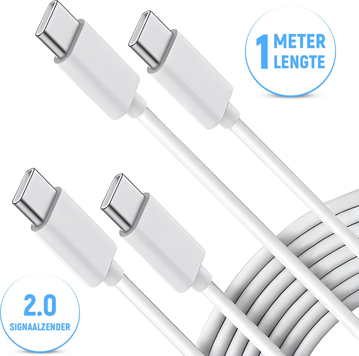 Bol.com | 2 Hoge kwaliteit USB-C Kabel’s - Oplaadkabel Datakabel Snellader Type C Kabel 2.0 Signaal Transmissie - Samsung iPhone Huawei - Wit |