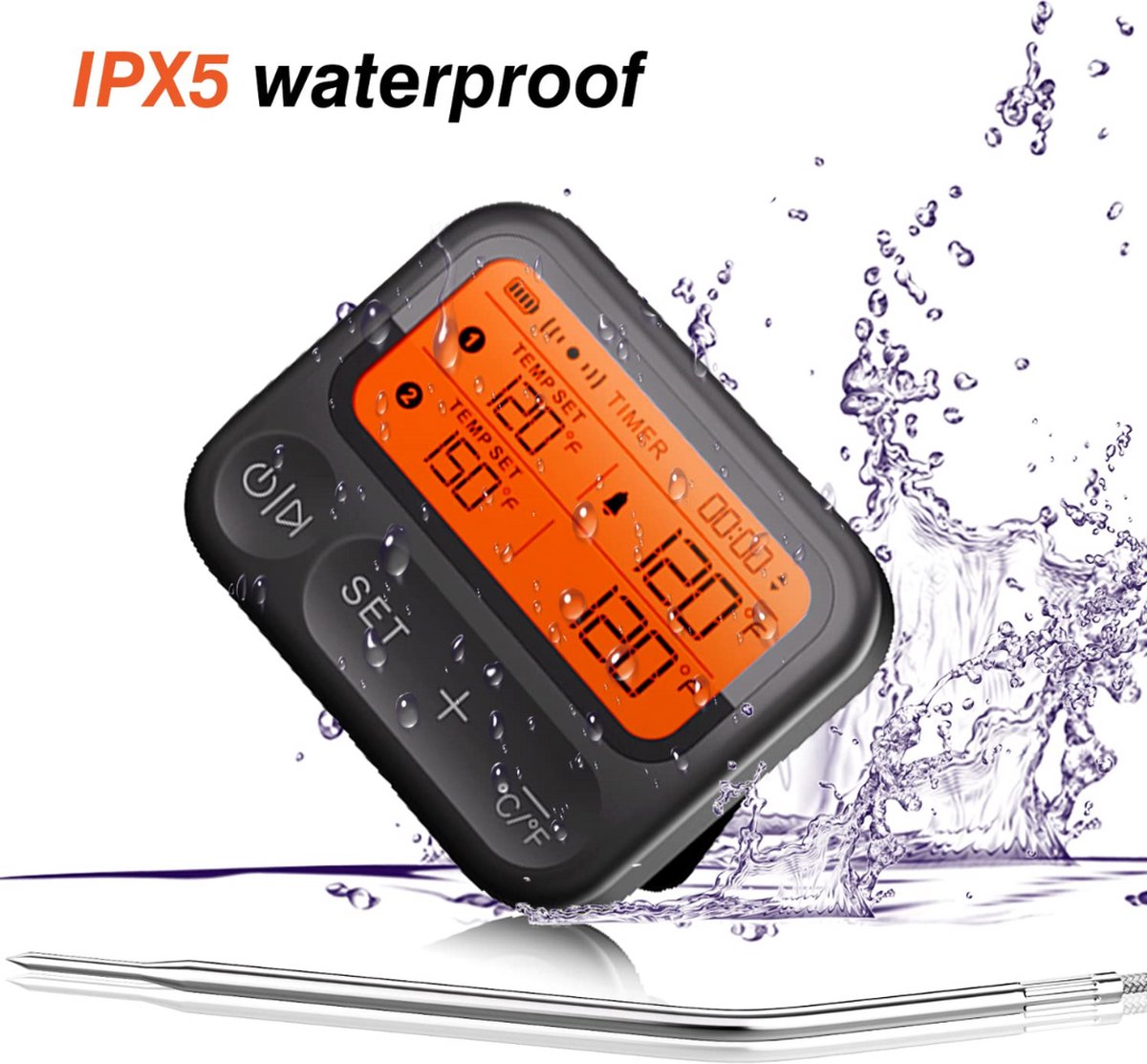 Bol.com | CHPN - Thermometer - BBQ Thermometer - Kookthermometer - Draadloos - Waterdicht - Keuken- & Vleesthermometer - Temperaturen - Koken - Bakken |