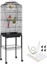 Bol.com | Papegaaienkooi – Parkietenkooi Op Voet & Wieltjes – Grote Vogelkooi Voor Binnen – Vogel Speelgoed - Voliere - Inclusief Accessoires - Vogelkooien – Zwart |